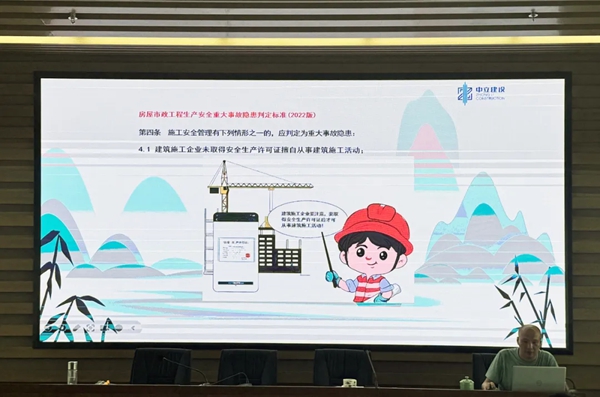 今年6月是第23個全國“安全生產月”,活動主題為“人人講安全,個個會應急--暢通生命通道;人人能自救、個個會逃生”。會上,安全部向參會人員宣貫了中立建設2024年“安全生產月”活動實施方案,要求施工現場通過各種形式的活動,如啟動儀式、懸掛橫幅、宣傳海報、“四小”安全教育等宣傳營造“安全生產月”活動氛圍,提高員工的安全意識。組織開展安全生產教育培訓,觀看“安全生產大家談”、“班前會”、“安全生產月”宣傳片和警示片等活動,深入學習安全生產知識,提升員工的安全防范能力。學習《房屋市政工程生產安全重大事故隱患判定標準(2022)》等,及時了解和掌握安全生產法律法規,確保施工過程中的合規性。開展應急救援演練,加強關鍵部位的隱患排查,提高應對突發事故的能力,確保施工安全。
