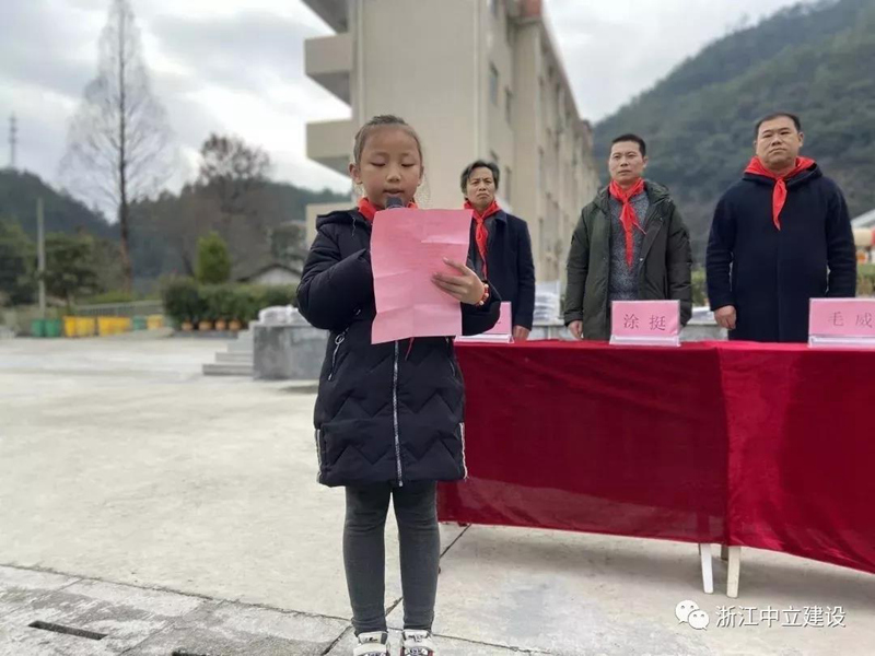 新年伊始,恰逢臘八,浙江中立建設有限公司帶著81套校服走進遂昌大山深處的黃沙腰小學,給大山里的孩子送去冬日里的溫暖。公司副總經理葉麗紅、項目負責人曹亮、黃沙腰鎮鎮長毛威、黃沙腰鎮人大主席涂挺、遂昌縣教育局黨組成員王其孔、黃沙腰小學校長葉益明出席了捐贈儀式。在捐贈儀式上葉麗紅希望同學們刻苦學習,立志成才,不負韶華,回報社會,回報祖國。葉校長致辭對捐贈校服的善舉表述了衷心的感謝。校優秀少先隊員王夢媛致感謝詞:“叔叔阿姨們,請相信我們,我們會努力學習,去創造一片屬于自己的絢麗天空;我們會努力學習,早日成為國家的棟梁,為家鄉建設貢獻自己的力量。我們堅信一定不會讓你們失望!”