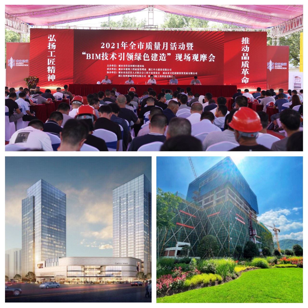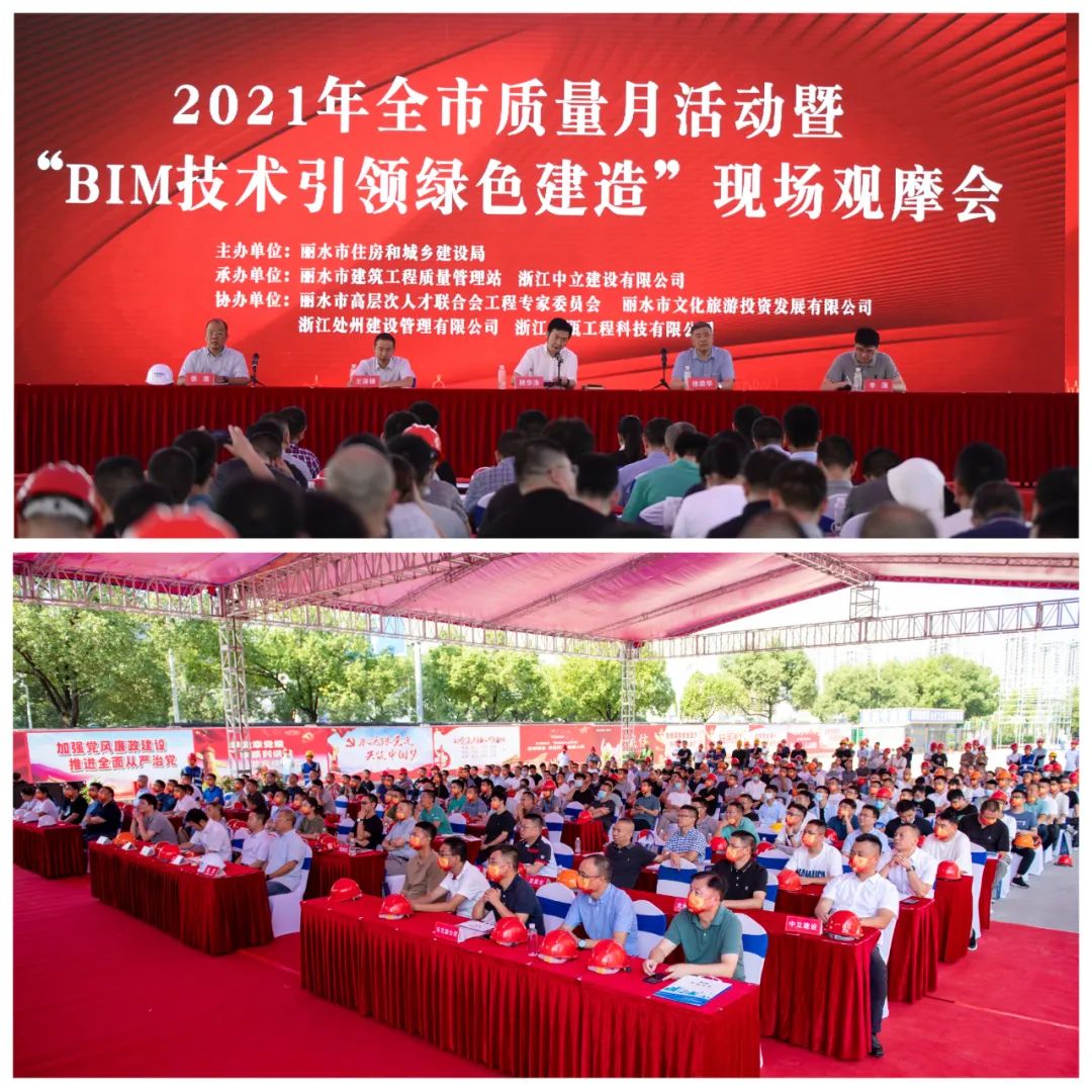 9月26日,2021年麗水市“質(zhì)量月”活動暨“BIM技術(shù)引領(lǐng)綠色建造”現(xiàn)場觀摩會在中立建設(shè)承建的麗水市水東綜合客運(yùn)樞紐項(xiàng)目召開。該項(xiàng)目建筑面積25.8萬平方米,是麗水市高鐵新城重要組成,其雙子塔造型形成一道靚麗的城市景觀天際線。建成后,將串聯(lián)起客運(yùn)、旅游服務(wù)、商業(yè)、酒店等各個(gè)功能,對于麗水市充分發(fā)揮高鐵的核心交通作用具有重要意義。